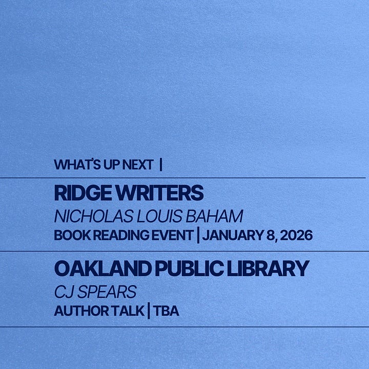 Alongside these launches, our authors Dr. Nicholas Baham and CJ Spears will be sharing their work through readings and talks in community spaces, extending each story beyond the page.